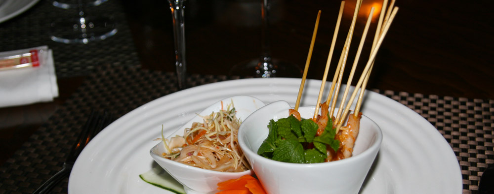 Peu de temps après avoir passé la commande, vous dégusterez une cuisine de grande qualité, exécutée par un Chef cuisinier thaïlandais de renom, Pitak Srimaithong et sa brigade, exclusivement thaïlandaise.